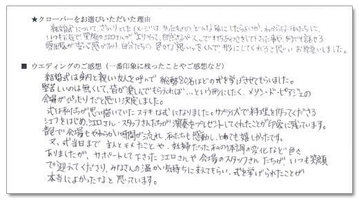 ウェディングのご感想