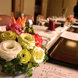 「披露宴」というスタイルよりも、互いのパートナーをご両家の皆様にご紹介する会食スタイル。名付けて「祝いの時間(とき)」!